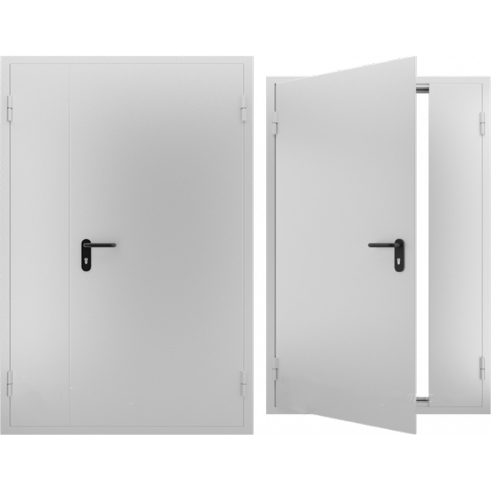 Дверь 2080*1480 7035 L 900-рабочая створка ДПМ EI-60 металл 1,2 мм, полотно 62 мм, наличник стандарт, порог стандарт, замок врезной, ручка черная нажимная, цилиндр кл\кл