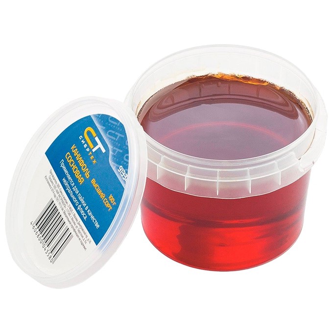 Канифоль высшего качества Сибртех 913342, в банке объемом 100 г, ГОСТ 19113-84, — нейтральный флюс на основе сосновой смолы. Используется для пайки проводов и радиодеталей, а также лужения жала паяльника. Удаляет с металлических поверхностей оксидные пленки и повышает надежность паяного соединения. Пригодится радиолюбителям, а также будет полезна в быту.