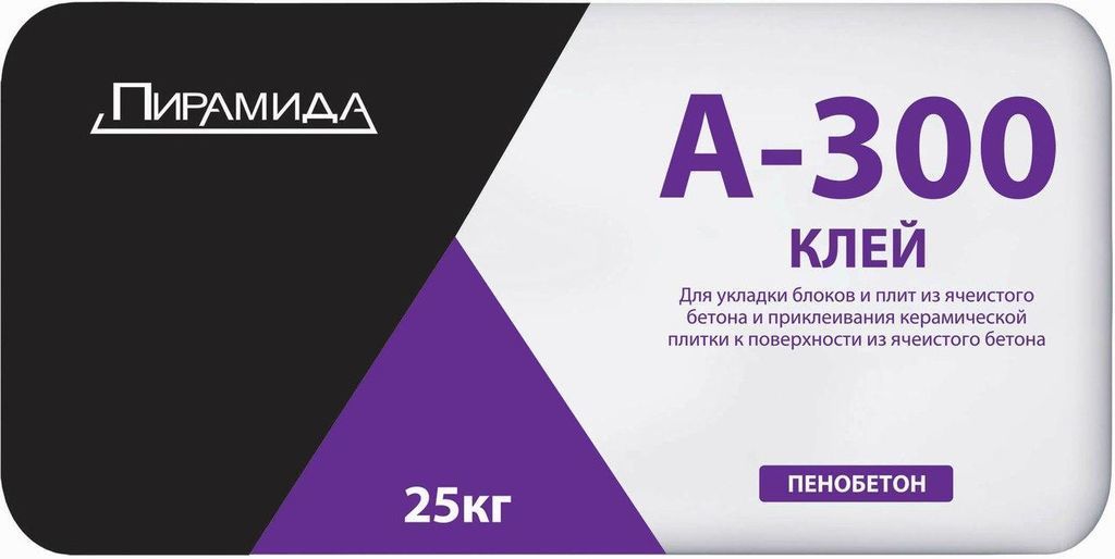 Клей ТМ Пирамида А-300 предназначен для укладки блоков и плит из ячеистого бетона и приклеивания керамической плитки к поверхности ячеистого бетона. Клей Пирамида А-300 подходит для внутренних и наружных работ.