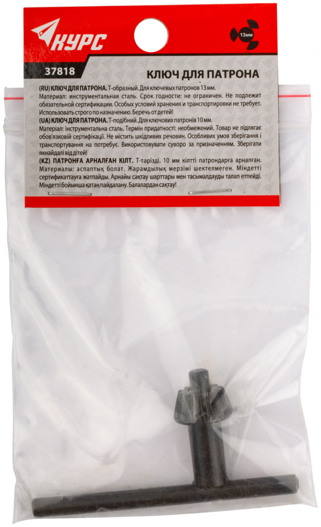 37818 Ключ для патрона Т-образный 13 мм KУРС