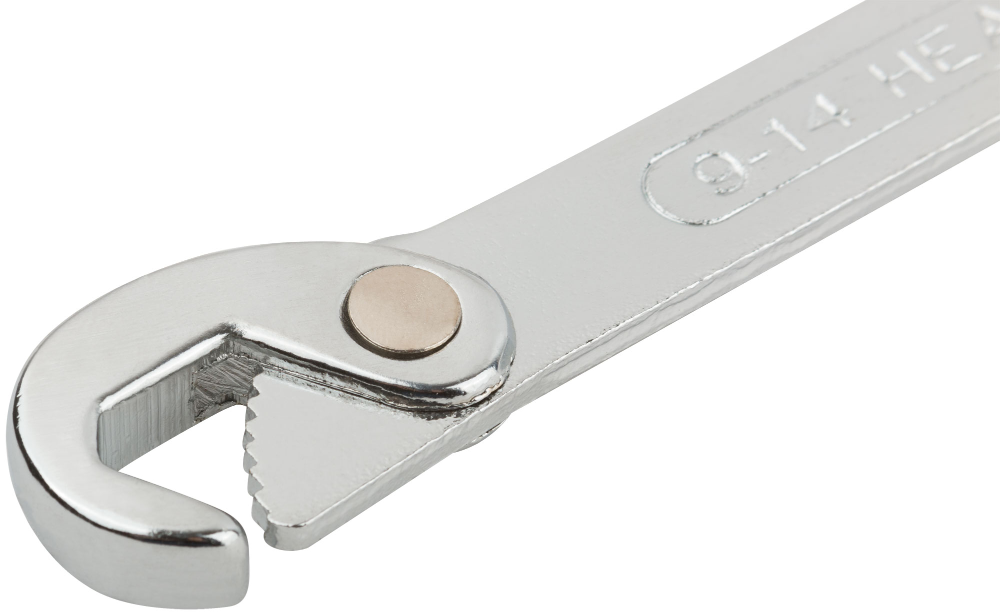 Система ускоренного захвата по принципу храповика позволяет работать с крепежными элементами раз-личных размеров, а так же дает возможность вращать детали, не имеющие граней (напр. труба). Материал: инструментальная сталь. Упаковка: блистер