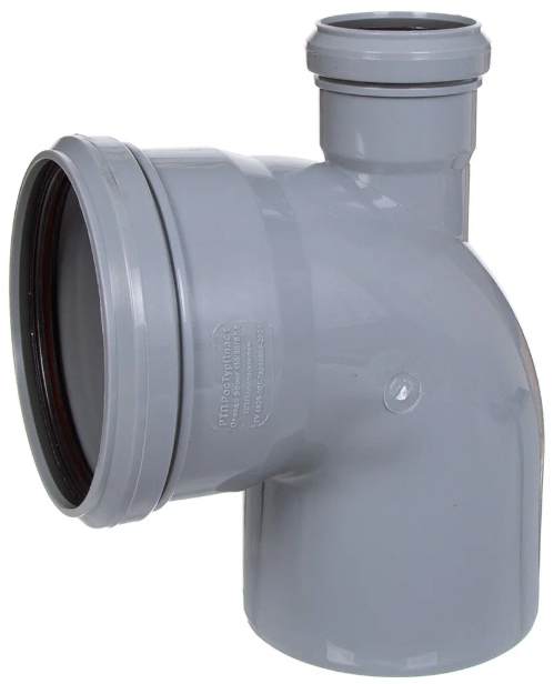 Колено 110х90 с выходом 50мм ВВЕРХ СЕРЫЙ