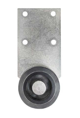Мебельное неповоротное боковое колесо на широкой пластине, 40 мм, серый, пластик, предназначено для оснащения мебели.
