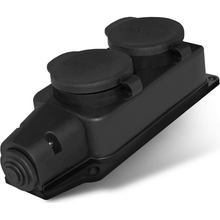 Однофазная 2-х местная колодка с заглушками, каучук UNIVersal 1027 используется для возможности сборки удлинителя с проводом любого сечения и длины.