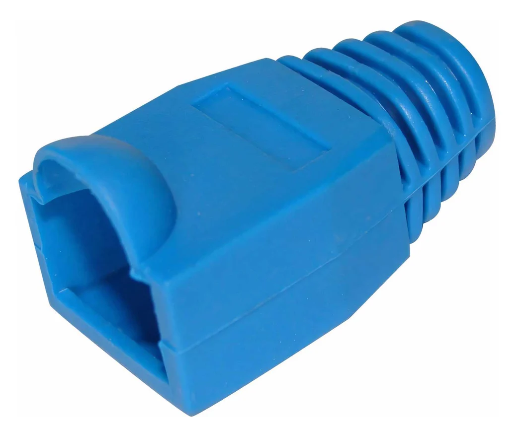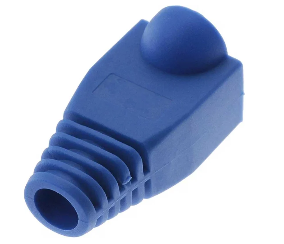 Колпачок RJ-45 синий REXANT предназначен для дополнительной защиты места соединения разъема RJ-45 (8P8C) и информационного кабеля при построении телефонных и компьютерных сетей. Защитный колпачок оберегает кабель от перегиба в месте соединения с разъемом, а также защелку коннектора от повреждения, что значительно увеличит срок службы готового шнура. Чаще всего он применяется с витой парой диаметром до 6 мм. Данный колпачок изготовлен из пожаростойкого и эластичного синего полипропилена.