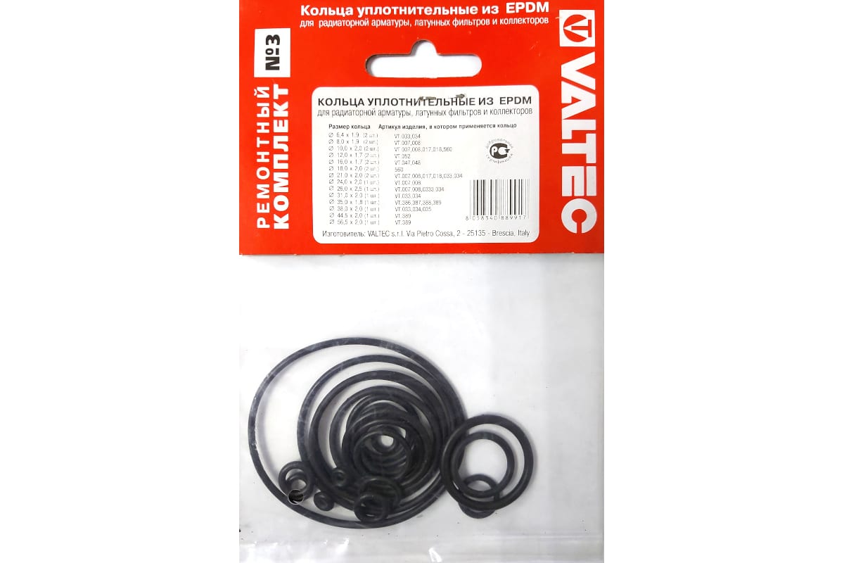 Кольца уплотнительные из EPDM, для радиаторной арматуры, лат. фильтров и коллекторов (ремонтный комплект №3)