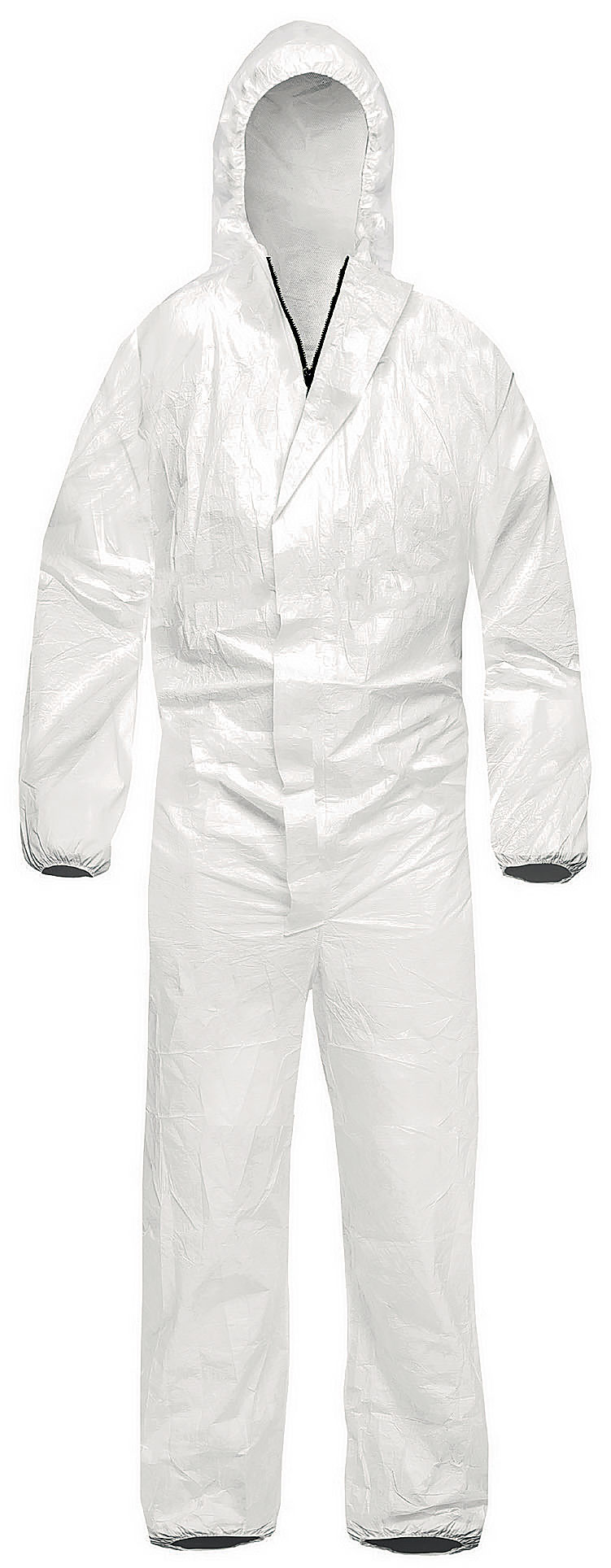 Комбинезон Master Color для малярных работ, цвет белый, с капюшоном. Изготовлен из 100% полипропилена «cпанбонд» (плотность 55 г/кв.м²) – нетканого безворсового материала. Нетоксичен, не вызывает аллергических реакций, антистатичен, имеет хорошую воздухопроницаемость одновременно с пылезащитными свойствами. Разрешен к применению в медицине, фармацевтической и пищевой промышленности. Данный вид производственных костюмов относится к категории комбинезонов и представляет собой идеальную одежду для работников, занятых в пищевой, фармацевтической, медицинской, мебельной и некоторых других видах промышленности. Кроме того, комбинезон незаменим в сфере косметологии, в процессе профессиональной уборки помещения, при проведении строительных (отлично защищает кожу при работе со стекловатой), малярных, штукатурных и лакокрасочных работ.