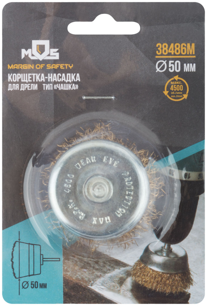 38486М Корщетка "тип чаша" стальная латунированная со штифтом // волнистая проволока // 50 мм // MOS