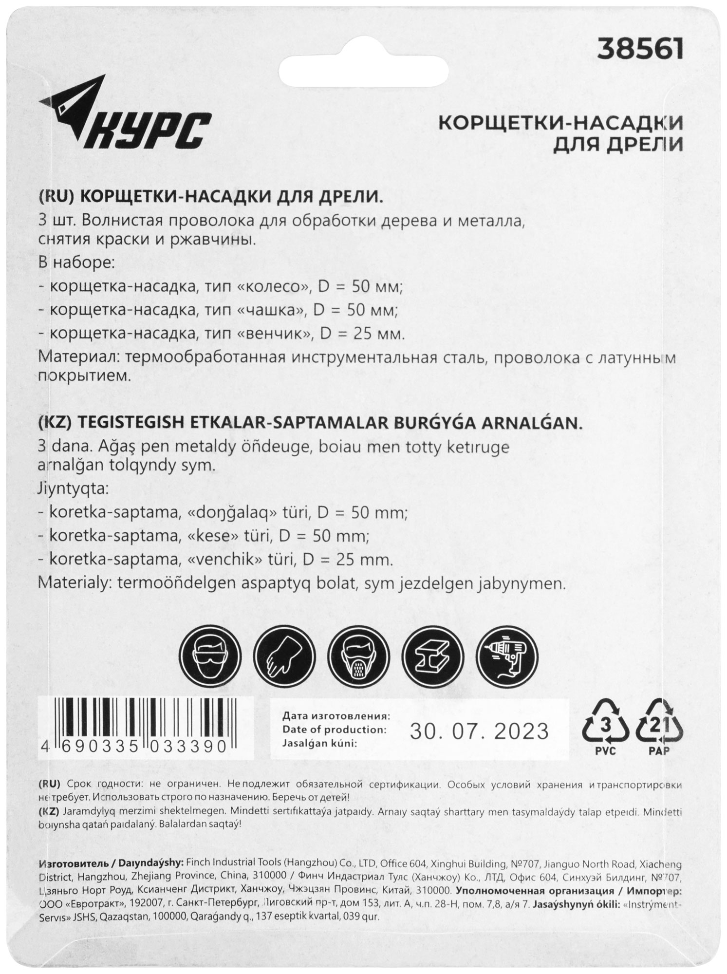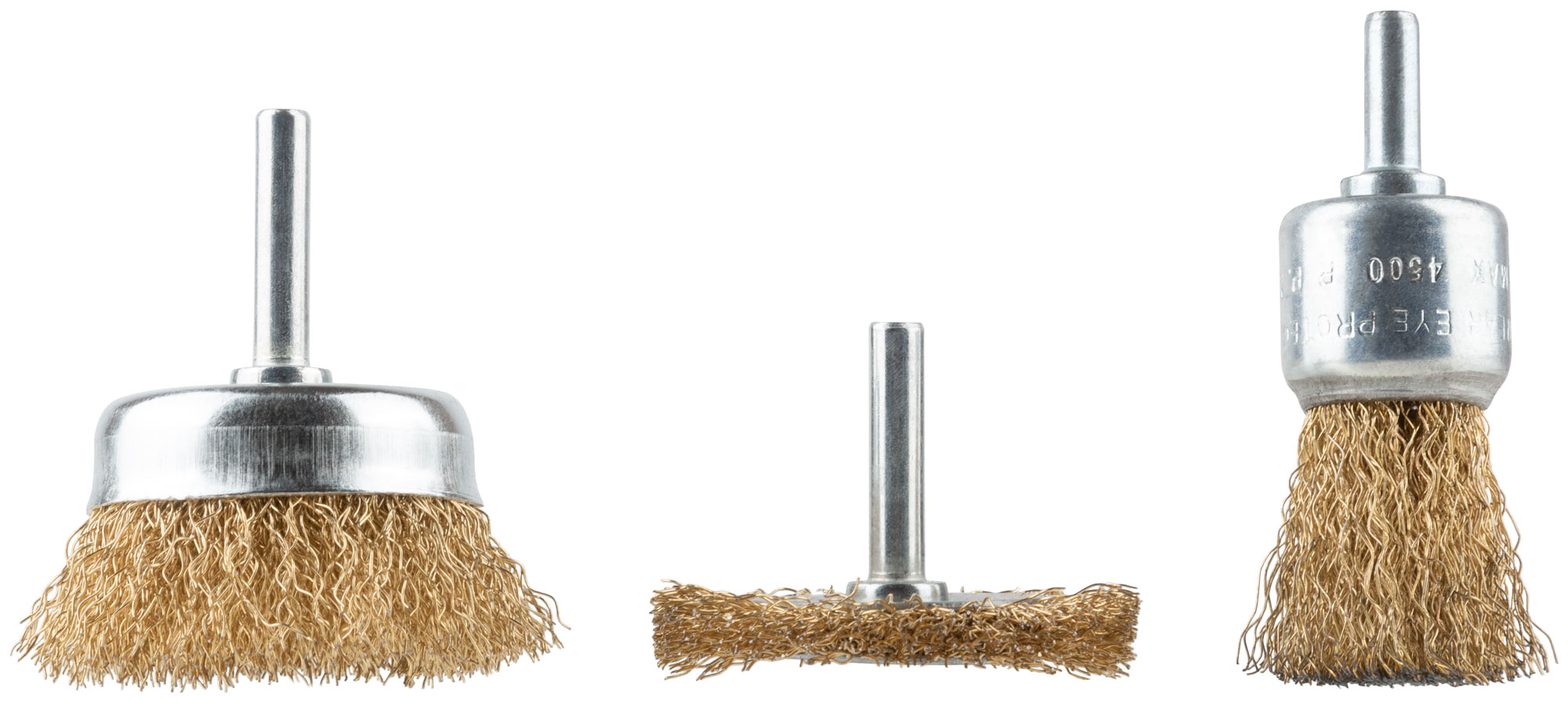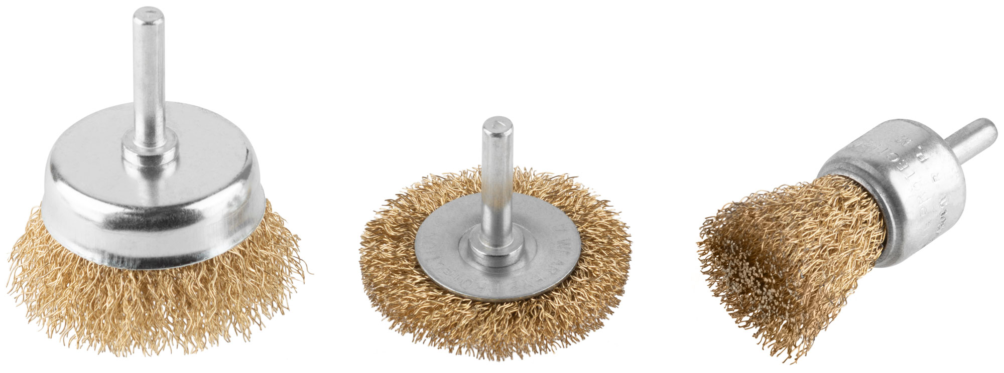 Набор 3 шт. Для дрели. Со шпилькой. Материал: стальная латунированная волнистая проволока. Упаковка: блистер.