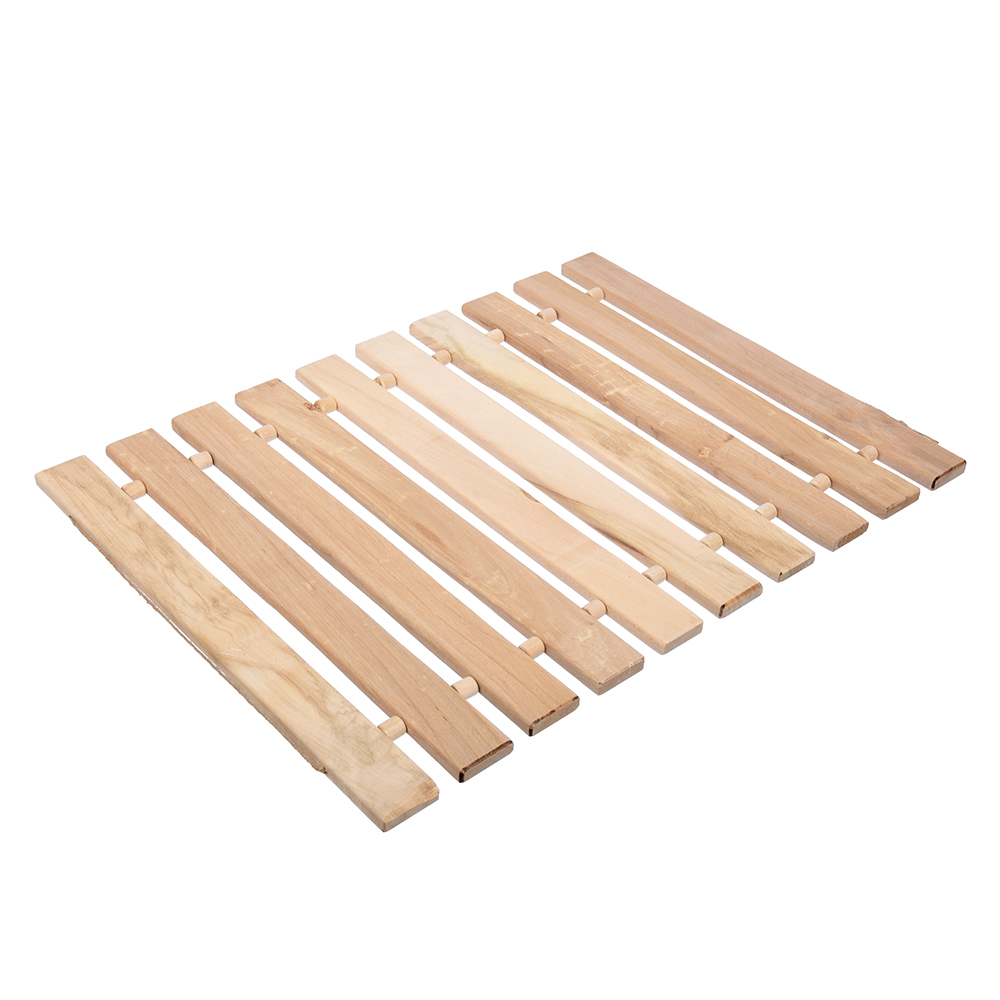 Деревянный коврик - удобное в транспортировке приспособление для бани и сауны, защищающее от прогретых до высоких температур поверхностей. Материал коврика - липа, он устойчив к воздействию влаги и появлению грибка.