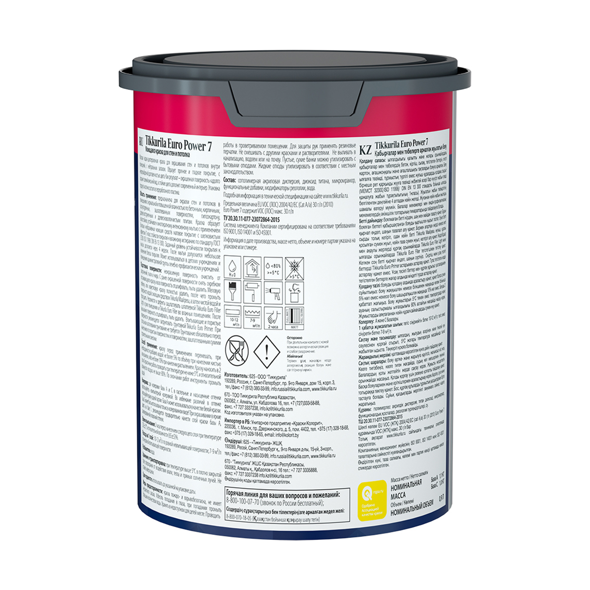 Это - отличная стойкая краска с хорошей укрывной способностью и экономным расходом. Кроме того, покрашенная поверхность устойчива к многократному интенсивному мытью с применением бытовых неабразивных моющих средств и выдерживает 10.000 проходов щеткой. Благодаря этим свойствам Tikkurila Euro Power 7 зачастую используют в помещениях, требующих частой уборки, а также в магазинах, офисах, в кафе, ресторанах и зонах ожидания в публичных местах.