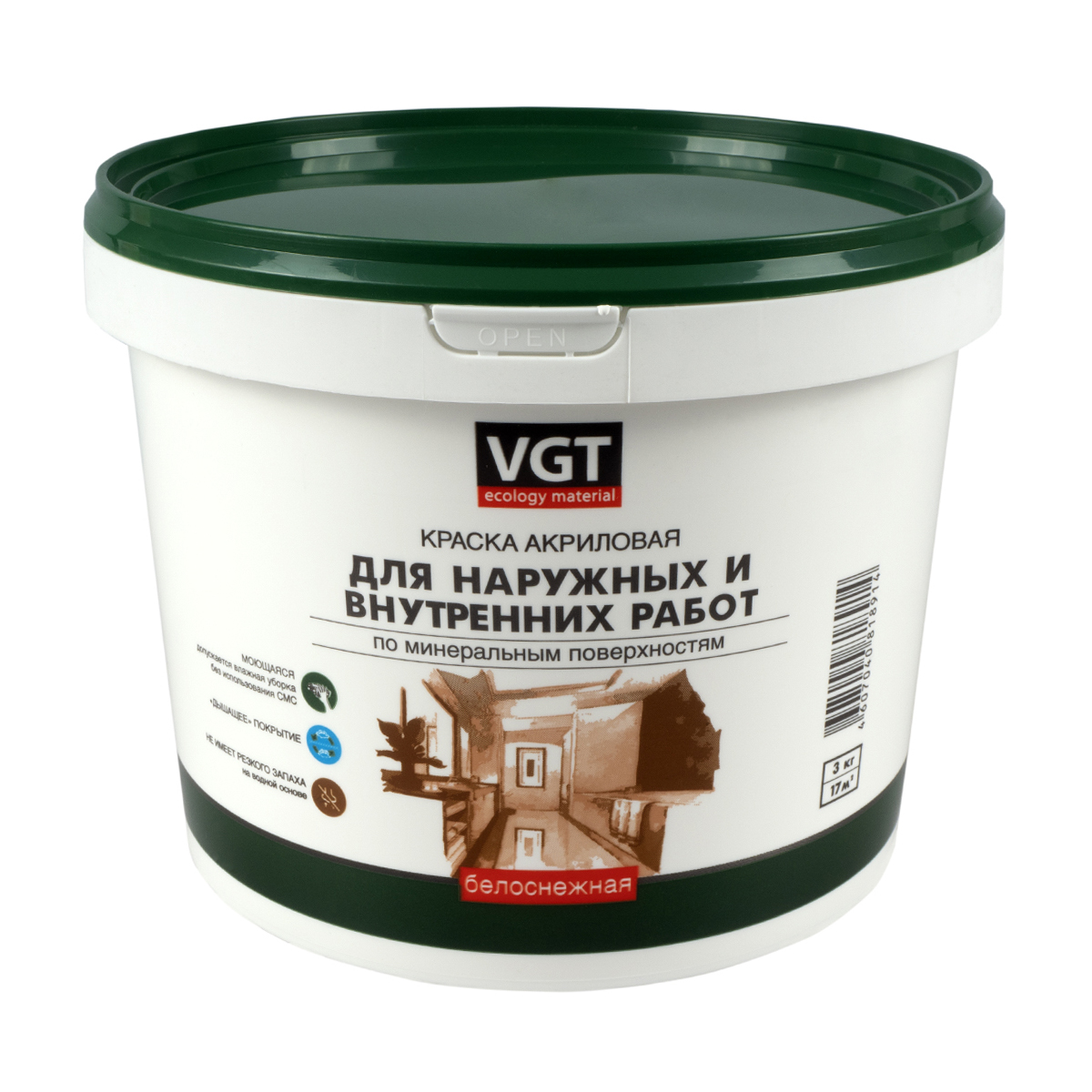 Краска для наружных и внутренних работ VGT ВД-АК-1180 белоснежная 3 кг