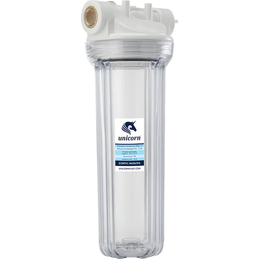 Прозрачный корпус магистрального фильтра дает возможность своевременно оценить загрязненность фильтрующего картриджа и произвести его замену.