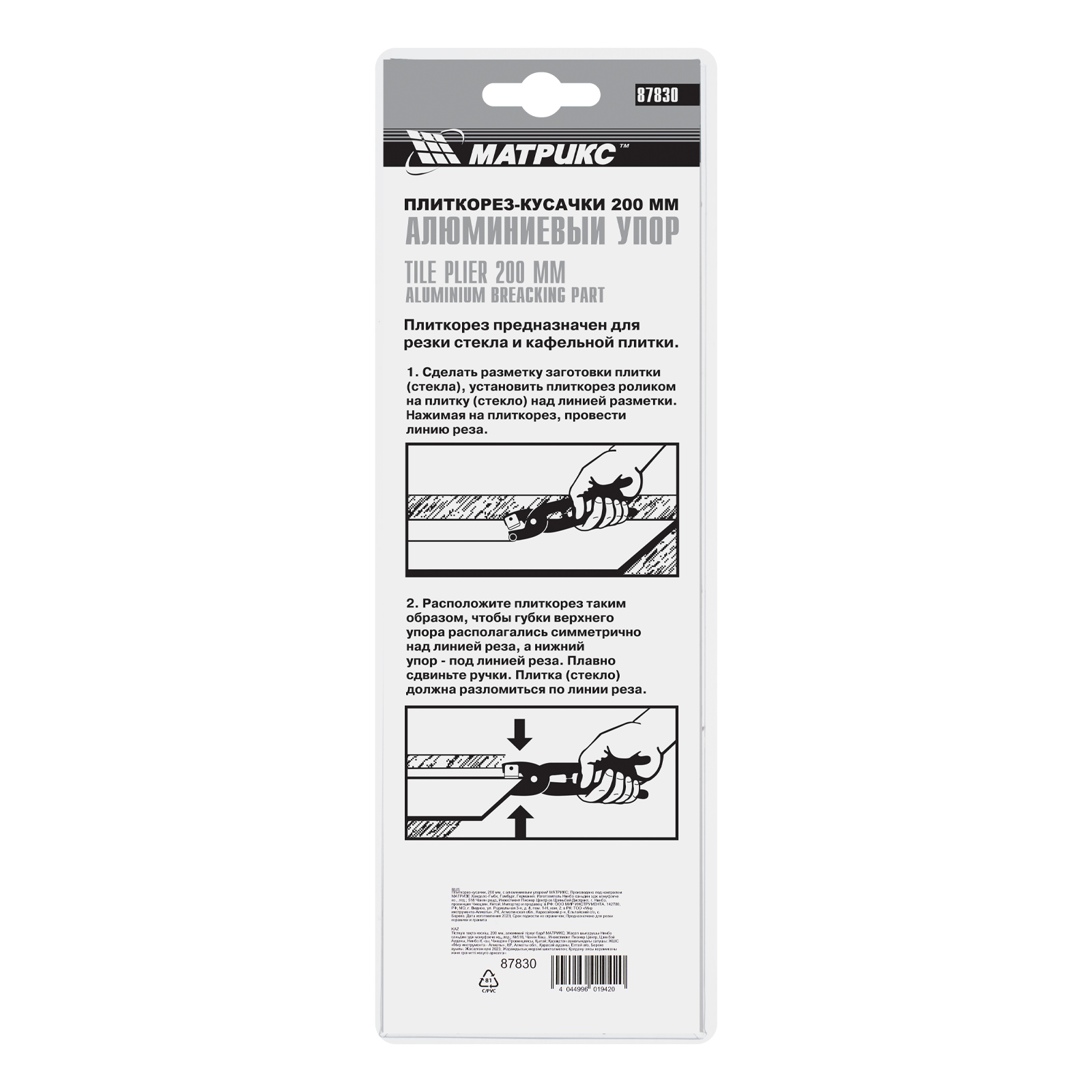 Плиткорез-кусачки, 200 мм, с алюминиевым упором Матрикс