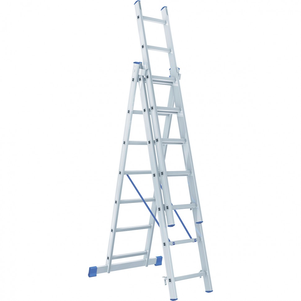Лестница, 3 х 7 ступеней, алюминиевая, трехсекционная, Россия, Сибртех
