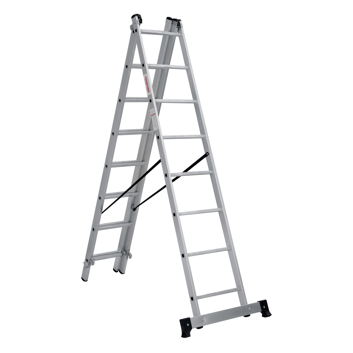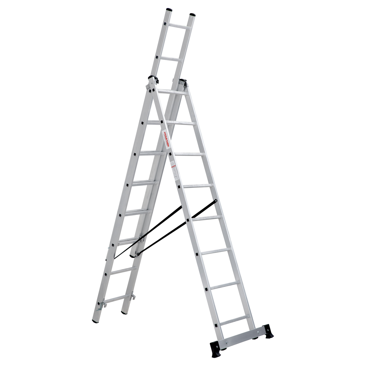 Лестница-стремянка трехсекционная Новая высота NV 1230, алюминиевая, 3 x 8 ступеней, 2,14 - 4,74 м
