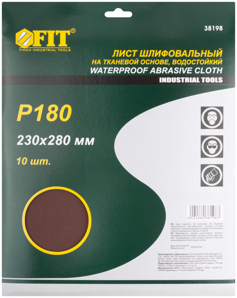 Листы шлифовальные водостойкие на тканевой основе, алюминий-оксидные, Профи 230х280 мм, 10 шт. Р 180