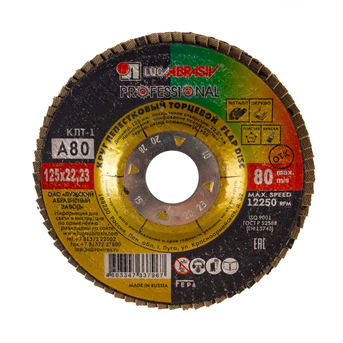 Круг лепестковый торцевой Луга - Абразив КЛТ1 P 80 (№20) 125 x 22 мм