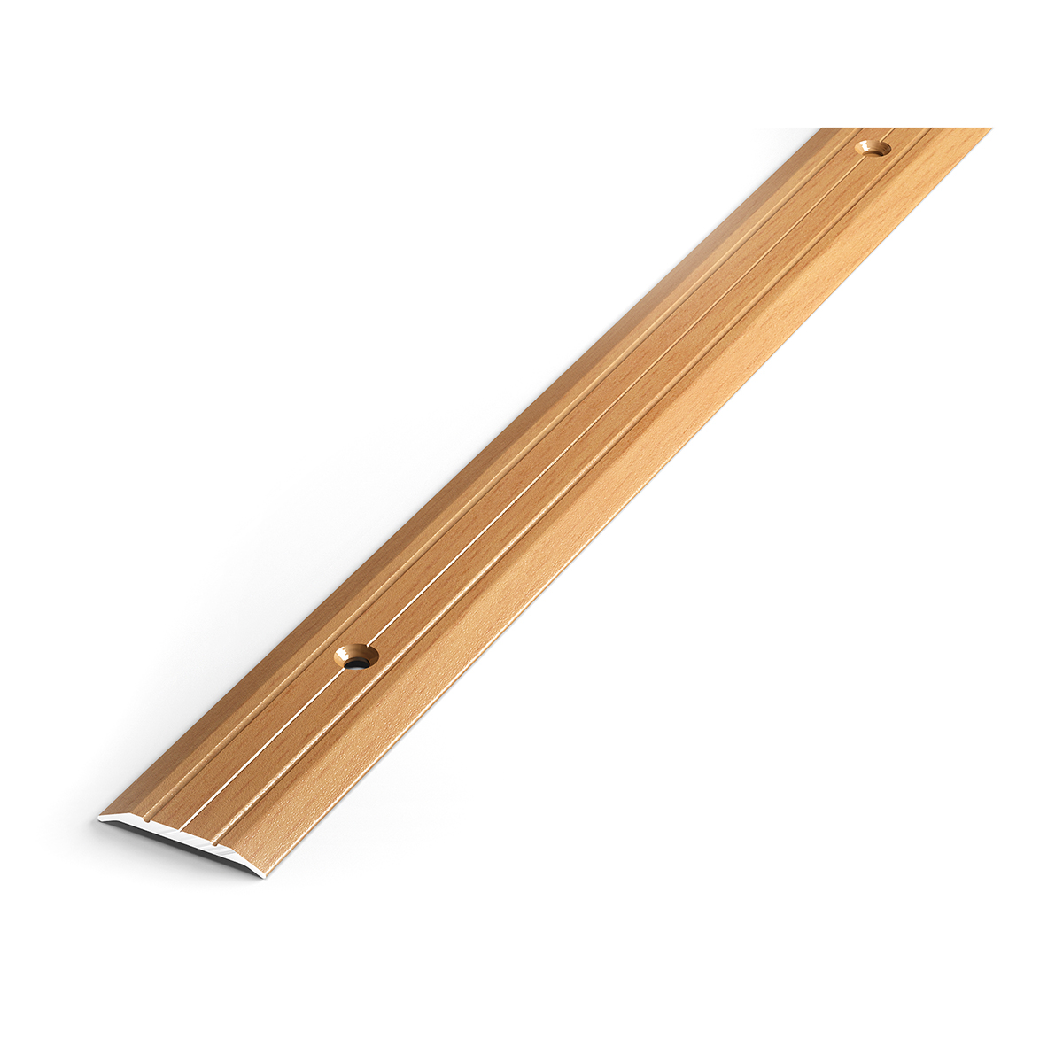 Предназначен для декоративной отделки стыков между различными напольными покрытиями. Комплектуется саморезами и дюбелями. Окрашен под структуру дерева.