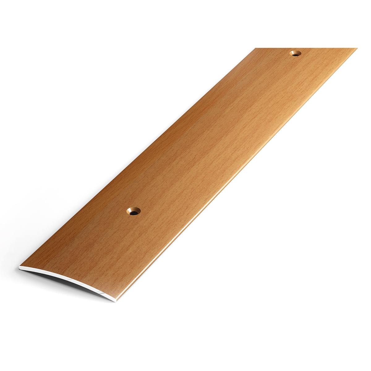 Предназначен для декоративной отделки стыков между различными напольными покрытиями. Комплектуется саморезами и дюбелями. Окрашен под структуру дерева.