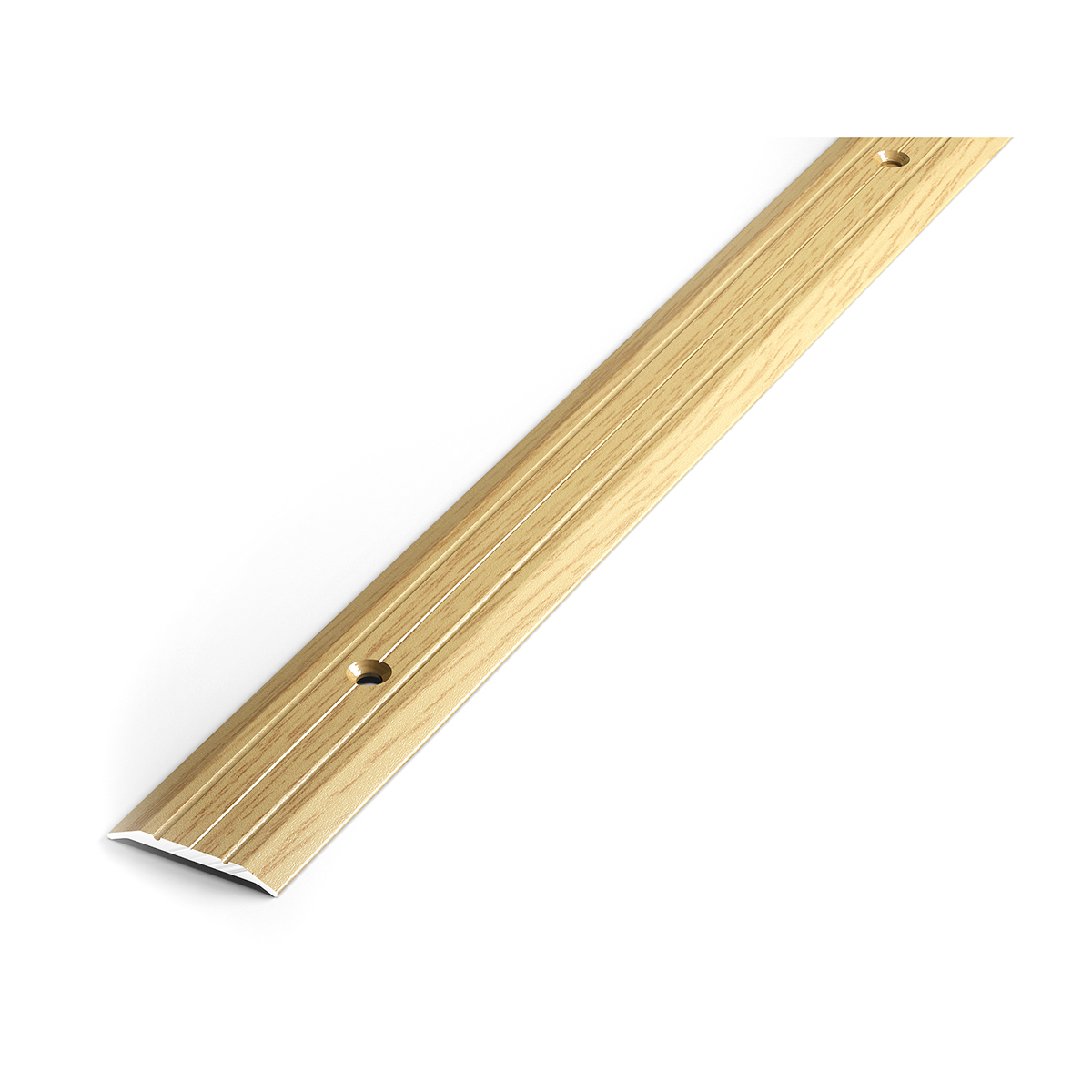 Предназначен для декоративной отделки стыков между различными напольными покрытиями. Комплектуется саморезами и дюбелями. Окрашен под структуру дерева.