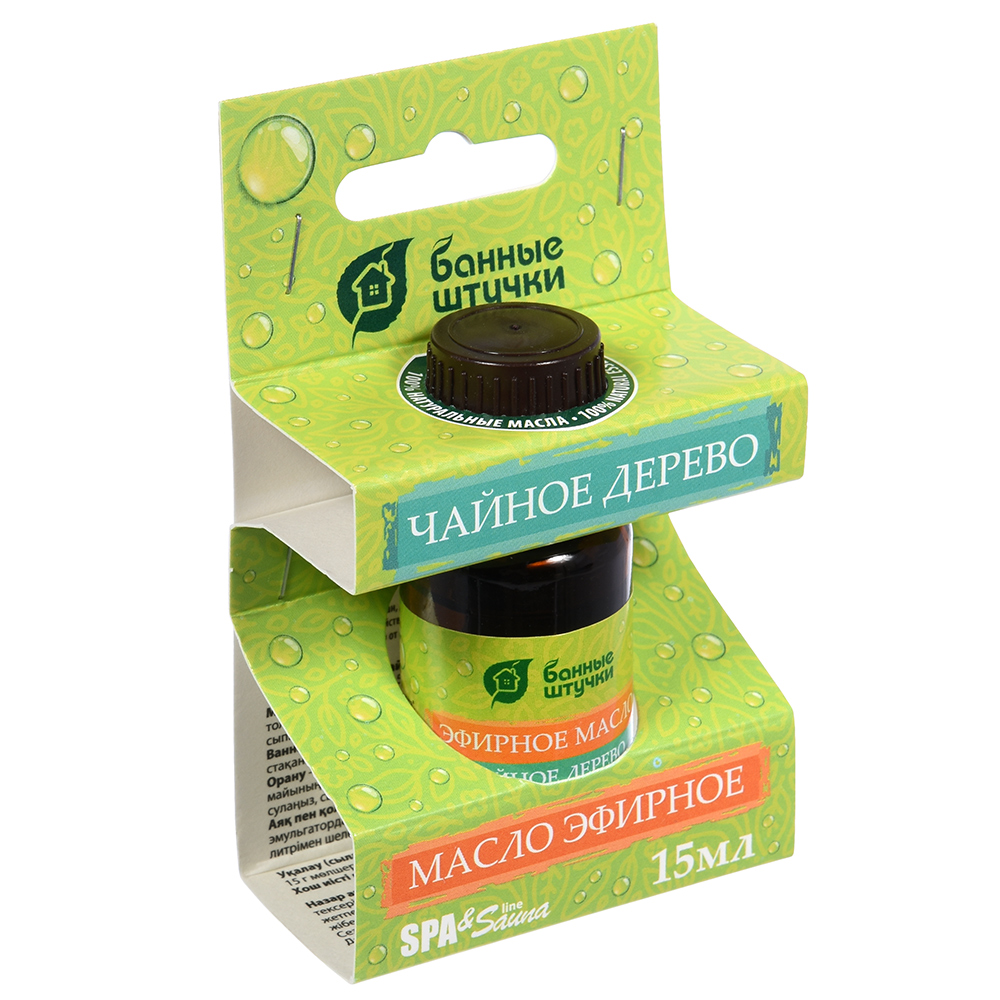 Эфирное масло БАННЫЕ ШТУЧКИ Чайное дерево – идеально для сауны, бани и горячей ванны. В сочетании с разогретым воздухом в парилке масла усиливают своё воздействие, облегчают дыхание и благотворно влияют на кожу, поднимают настроение, создают атмосферу спокойствия и гармонии.