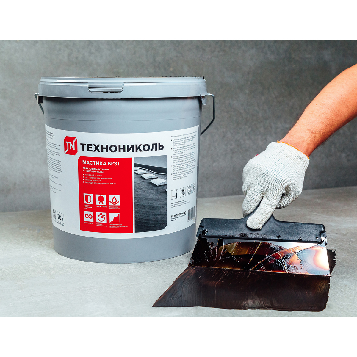 Мастика эмульсионная битумно-полимерная Технониколь №31 – это готовый к применению материал, являющийся водной эмульсией нефтяного битума, модифицированного искусственным каучуком, технологических добавок и минеральных наполнителей. Покрытия на её основе обладают высокими: эластичностью, прочностью сцепления с основанием, теплостойкостью, устойчивостью к воздействию влаги. Не содержит растворителей.