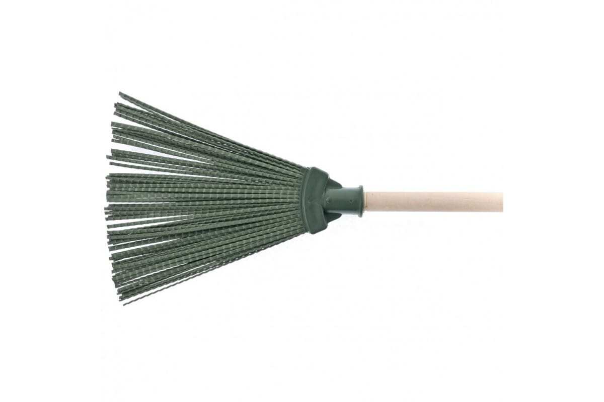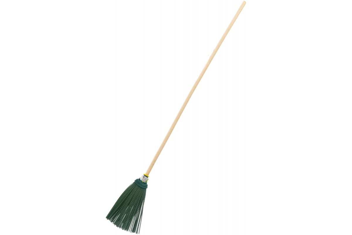 Черенок из дерева твердых пород обеспечивает надежный хват, что повышает комфорт во время подметания.