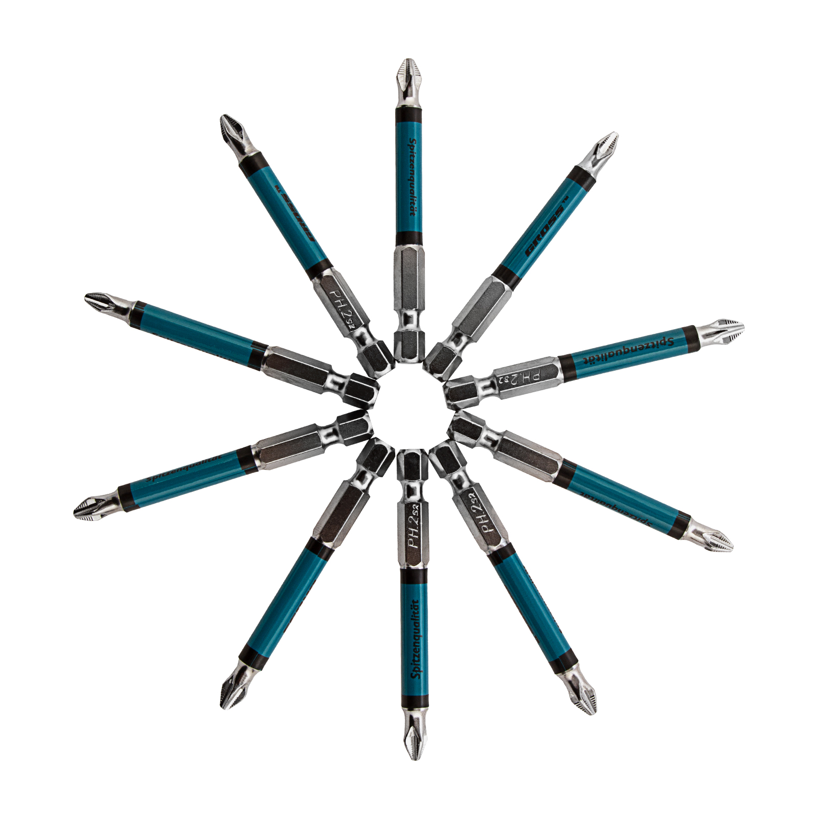 Износоустойчивость — биты изготовлены из японской легированной стали S2 повышенной прочности и закалены до твердости 54-58 HRC.