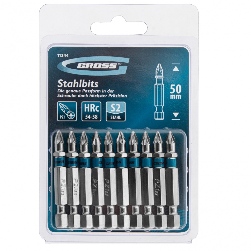 Набор бит Gross 11344 состоит из 10 насадок типоразмера PZ1 и длиной 50 мм, с хвостовиком 1/4 дюйма, изготовленных из стали S2 и предназначенных для шуруповертов. Оснастки служат для монтажа и демонтажа шурупов, саморезов и других резьбовых соединений. Шлиц PZ имеет 4 дополнительных ребра, благодаря чему предотвращается проскальзывание биты в крепеже, повышаются точность и эффективность работ.