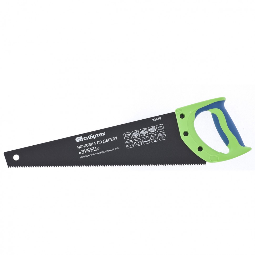 Ножовка по дереву Сибртех «Зубец» 23810 с полотном длиной 400 мм, калеными зубьями с 2D-заточкой и шагом 7-8 TPI, защитным покрытием и 2-компонентной рукояткой, используется для распиливания заготовок из древесины, фанеры и ДСП. Выполняет продольный и поперечный распил. Заточка зубьев 2D дает возможность пилить по направлению как вперед, так и назад. Зубья с универсальным шагом 7-8 TPI обеспечивают оптимальную скорость и качество реза. Если режущая кромка затупится, ее можно будет заточить. Ножовка будет полезна в столярной мастерской, а также дома или на даче.