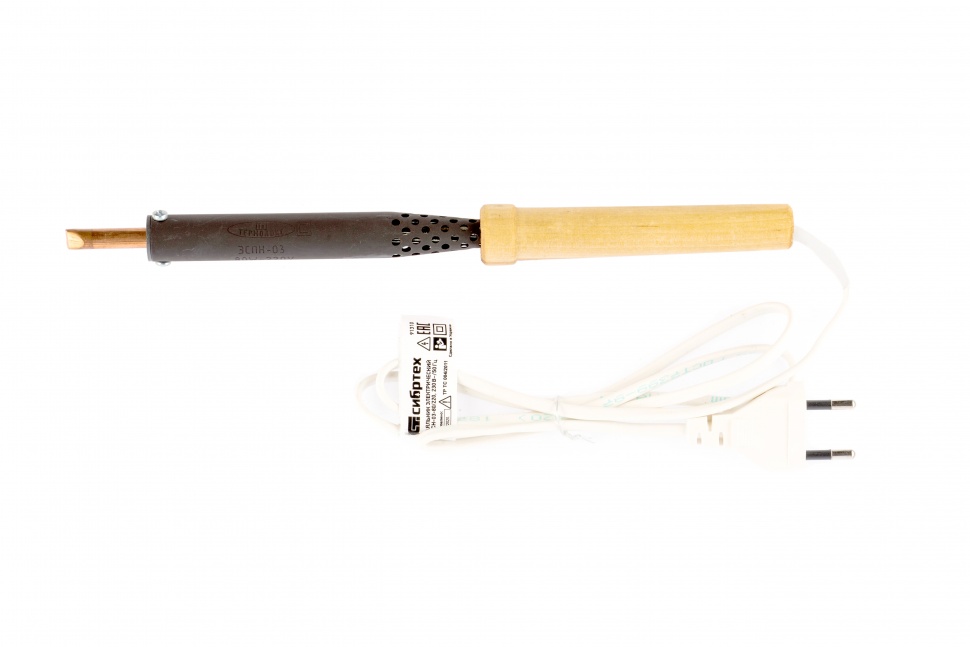 Электрический паяльник Сибртех ЭПСН-03-80/220 91310 с деревянной ручкой используется для пайки электросхем, проводов, небольших деталей. Мощность инструмента составляет 80 Вт, поэтому он успешно справляется с поставленными задачами. Паяльник используют для ремонта бытовой и радиотехники, а также во время обслуживания автомобилей.