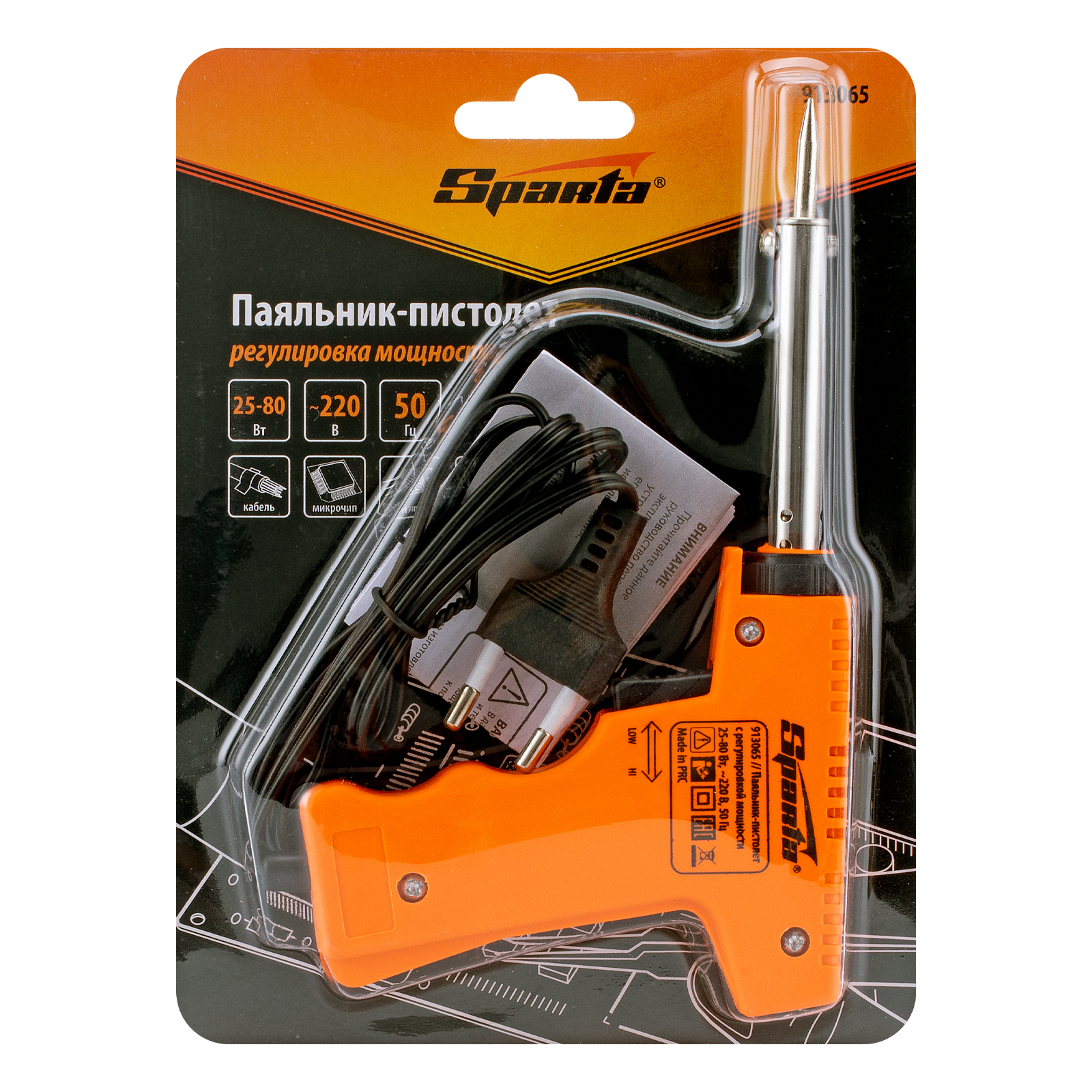 Паяльник-пистолет с регулировкой мощности 25-80 Вт, 220 В Sparta