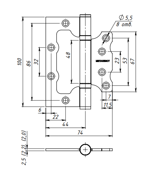 Петля накл. ПНУ 100 цинк (кунгур) (00005286)