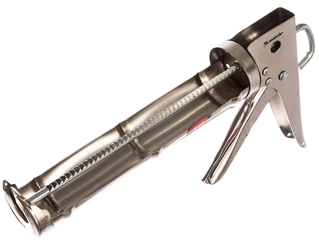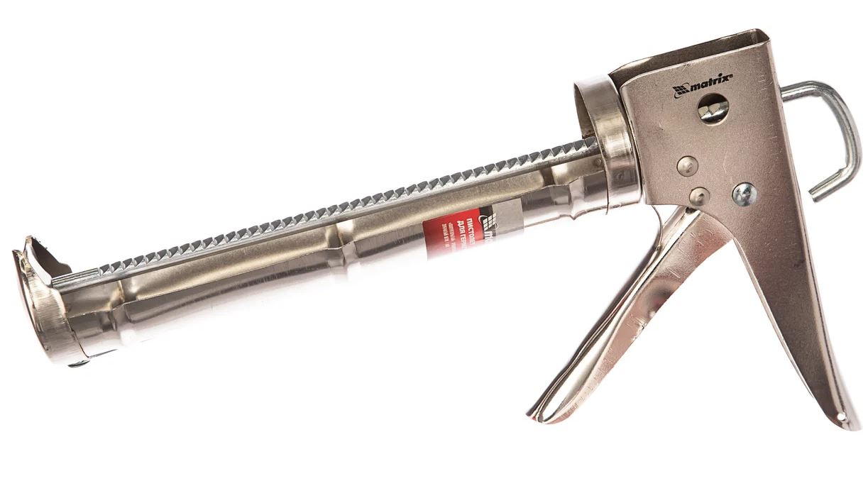 Хромированный пистолет для герметика Matrix 88640 полуоткрытого типа, с зубчатым штоком диаметром 7 мм, предназначен для установки стандартной тубы с клеем или герметиком объемом 310 мл. Зубчатый шток позволяет точно дозировать и аккуратно наносить смесь. Пистолет пригодится строителям, сантехникам и мастерам по ремонту, а также будет полезен в быту.