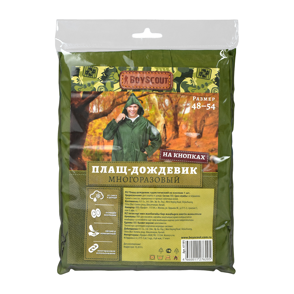 На улице дождь или мокрый снег? Вы всегда будете чувствовать себя комфортно с дождевиками BoyScout. В походе, на охоте и на рыбалке Вы получите максимум удовольствия, невзирая на капризы погоды. Надежные и легкие универсальные дождевики BoyScout легко упаковываются в специальные мешочки для транспортировки и не займут много места в рюкзаке. Особо порадуют проклеенные швы, способные устоять перед серьезным ливнем.