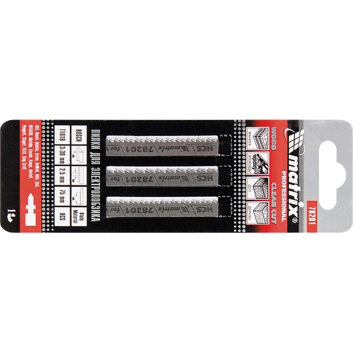 Полотна для электролобзика по дереву, 3 шт, T101B, 75 х 2.5 мм, HCS Matrix Professional
