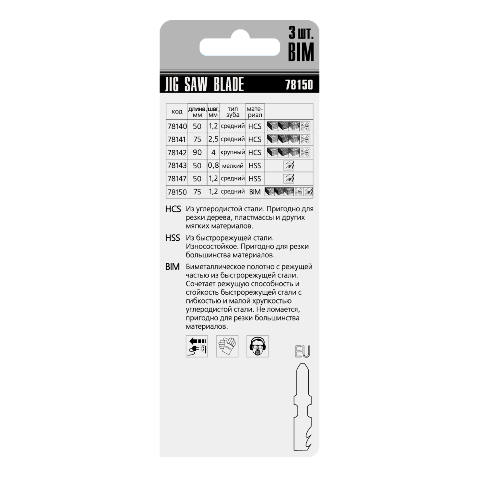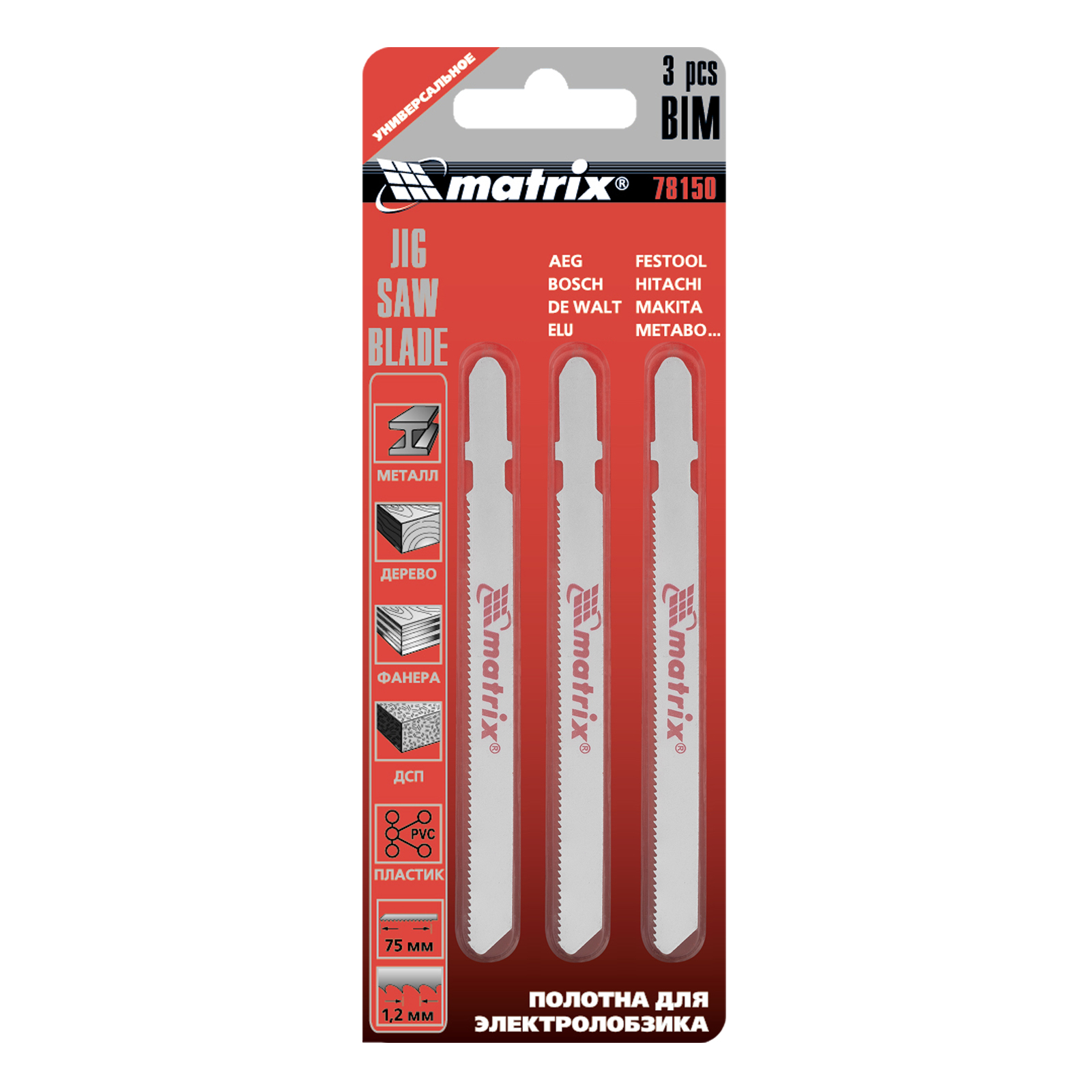 Полотна для электролобзика универсальные, 3 шт., 75 х 1,2мм, BIM, EU- хвостовик Matrix