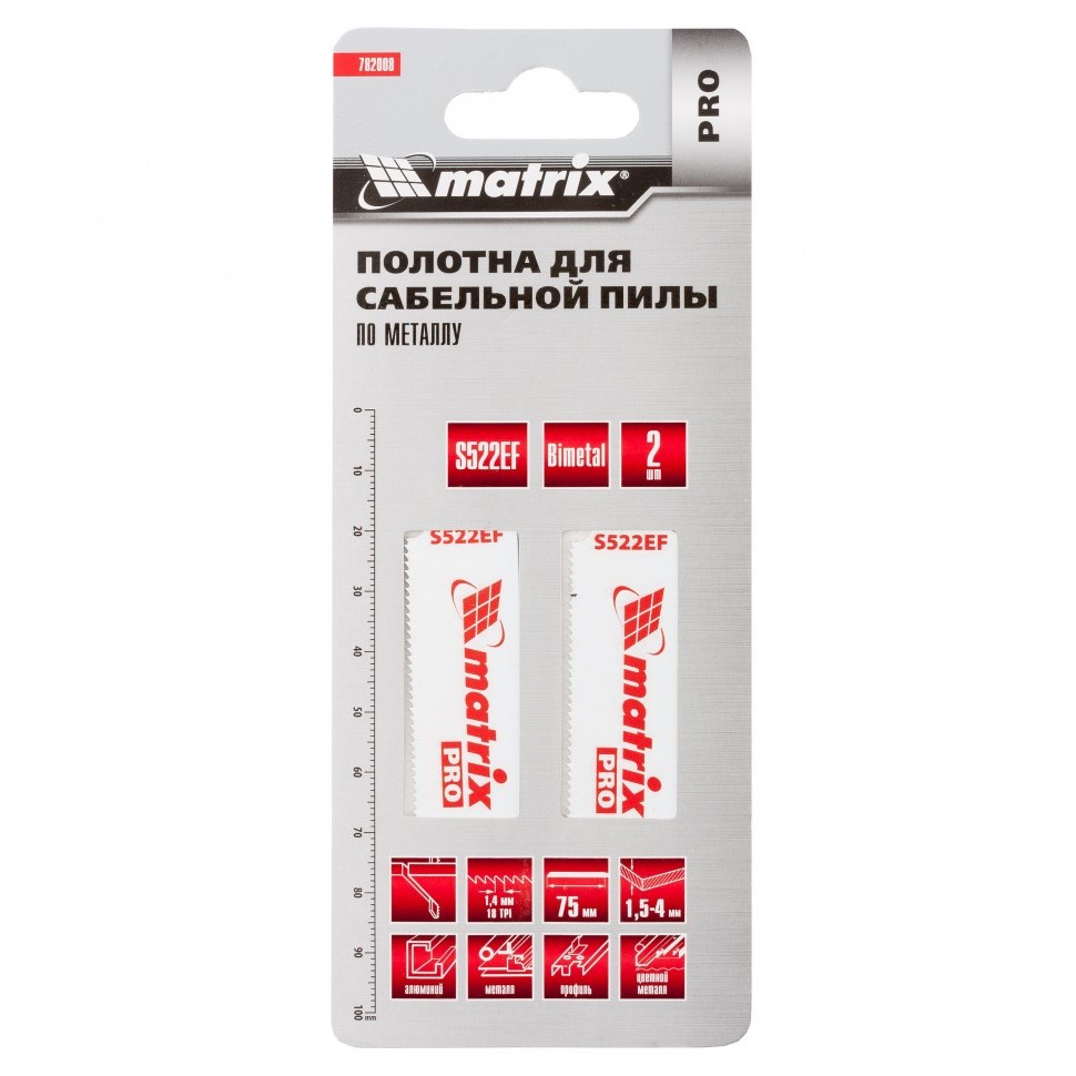 Полотна по металлу для сабельной пилы Matrix PRO 782008, S522EF, 75/1,4 мм, Bimetal, — комплект из 2 шт., предназначенных для распила профилированного алюминия и листового металла толщиной от 1,5 до 4 мм. Полотна имеют универсальные хвостовики и совместимы с большинством моделей сабельных пил. Будут полезны на строительной площадке, в слесарной мастерской, а также в быту.