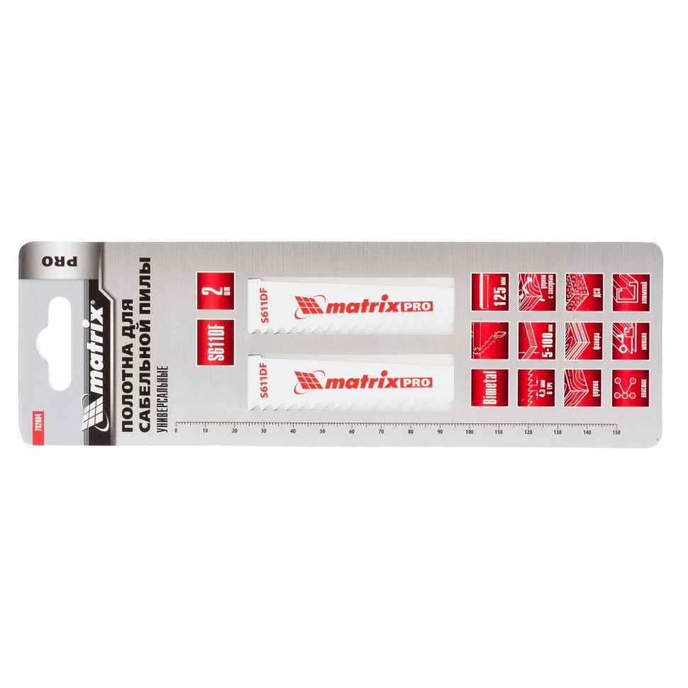 Универсальные полотна для сабельной пилы Matrix PRO 782004, S611DF, 125/4,3 мм, Bimetal, 2 шт. в упаковке, позволяют распиливать заготовки из дерева, пластика, листового металла, фанеры, ДСП, справляются также с алюминиевыми профилями и древесиной с гвоздями. В зависимости от материала глубина распила составляет от 5 до 100 мм. Полотна пригодятся на строительной площадке, во время ремонта, демонтажа различных конструкций, будут полезны дома и на даче.