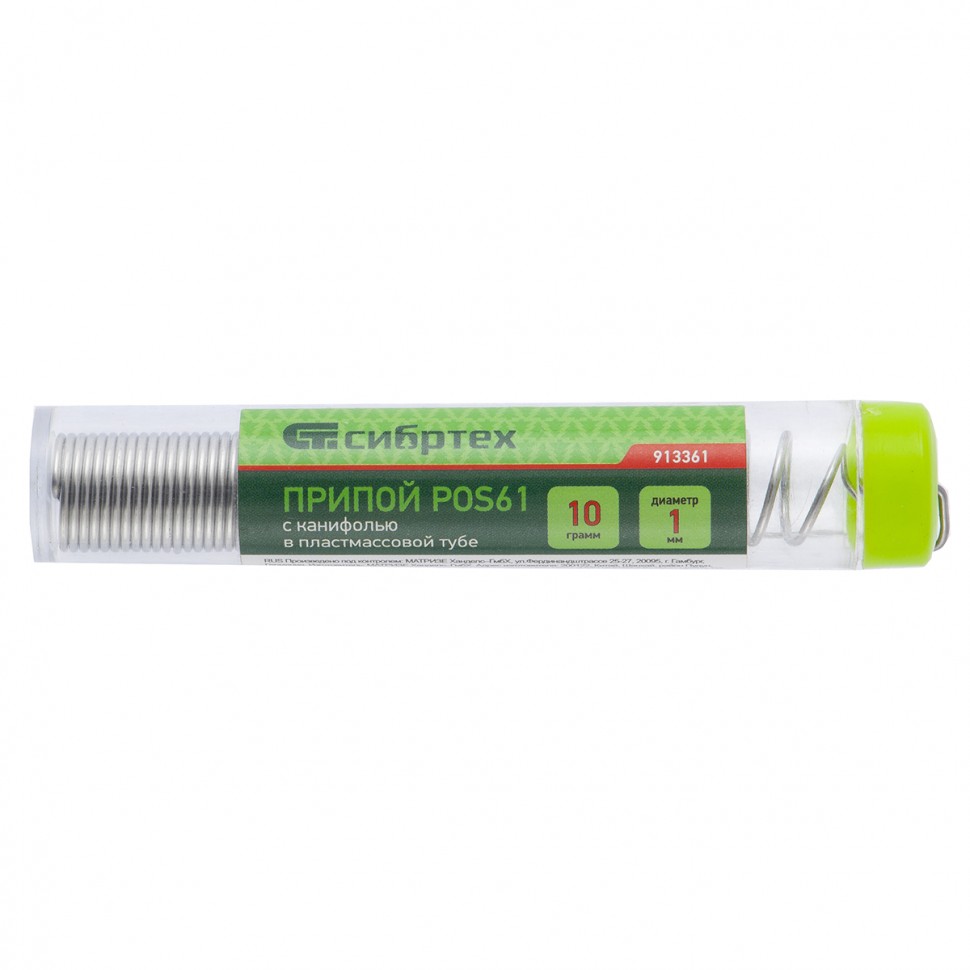 Припой с канифолью POS61 Сибртех 913361, диаметром 1 мм, весом 10 г, в пластмассовой тубе, — материал для пайки, в расплавленном состоянии соединяющий металлические детали. Содержит 39% свинца, олово и канифоль, не требует очистки припаиваемых поверхностей. Будет полезен для бытового ремонта радиоэлектронной аппаратуры.
