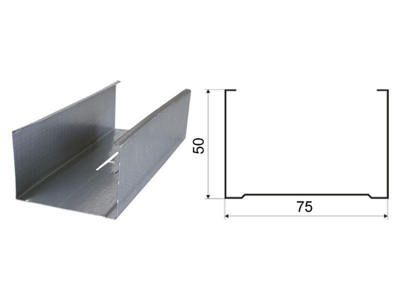Предназначен для устройства каркасов межкомнатных перегородок, облицовок, других конструкций на основе гипсокартона и прочих листовых материалов. Используется вместе с направляющим профилем соответствующего типоразмера. Изготовлен методом холодного проката из оцинкованного металла.