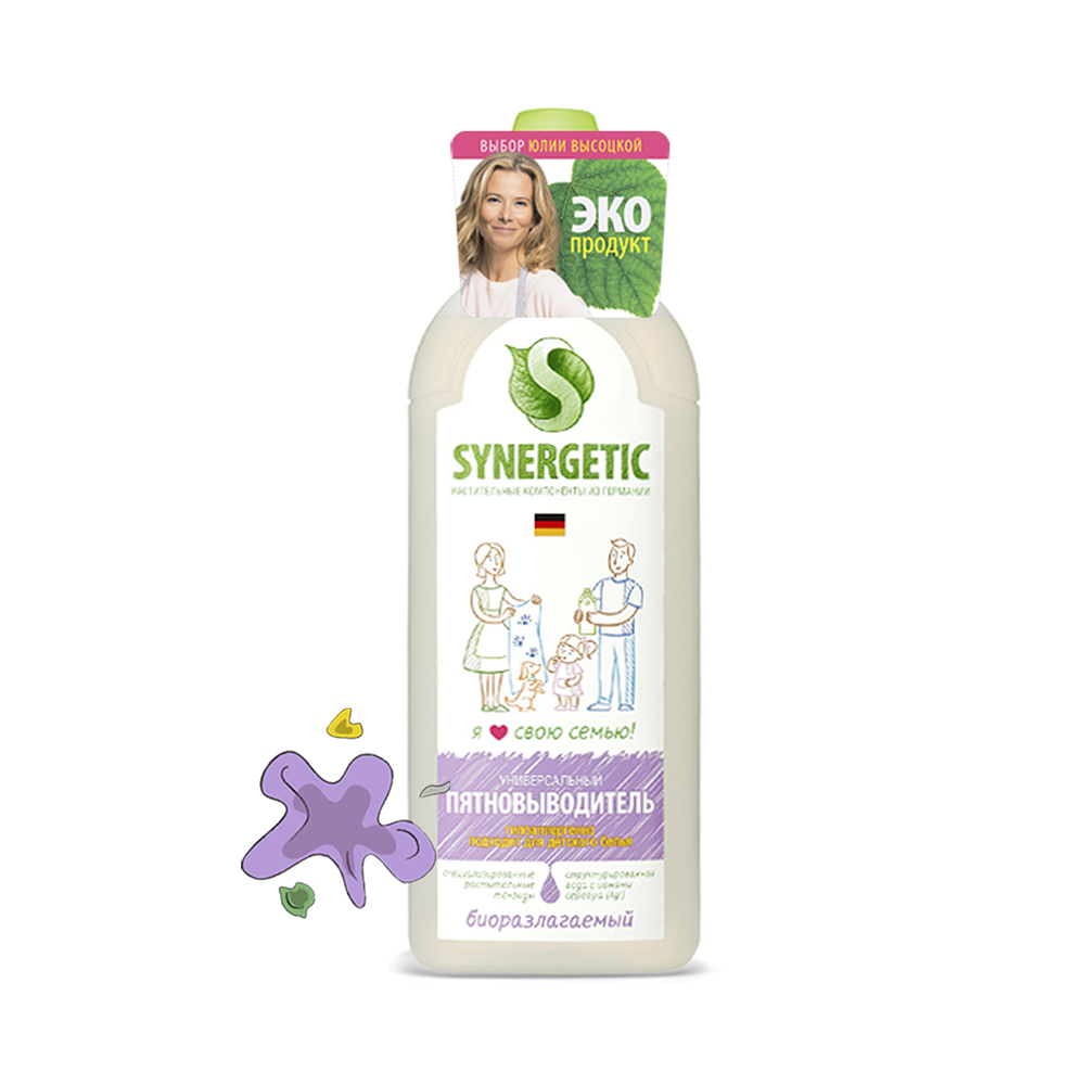 Универсальный пятновыводитель. Выполаскивается из волокон ткани на 100%, не остается на одежде.