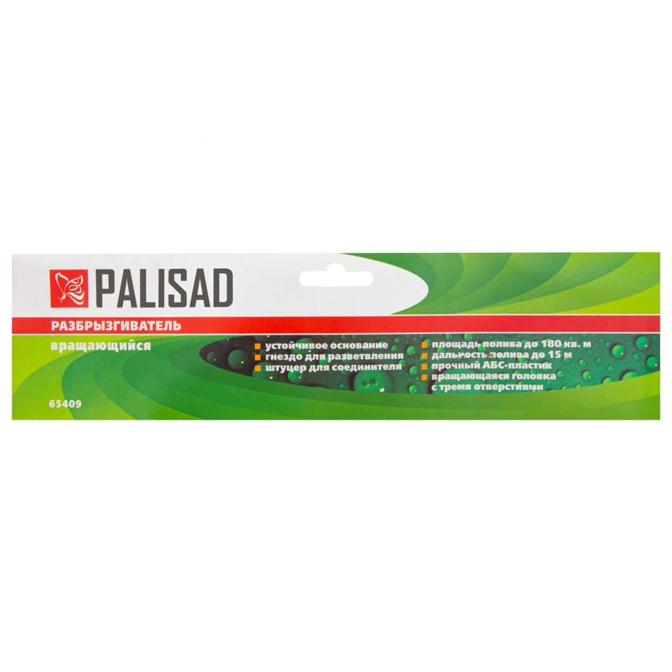 Пластиковый вращающийся разбрызгиватель Palisad 65409 с 3 лопастями и подставкой, штуцером D 3/4 дюйма, D 15 м, подходит для кругового полива участков площадью до 180 кв м. Он значительно упрощает полив газона, огорода, клумб и т.д. С помощью разбрызгивателя можно создать поливочную линию для орошения растений.