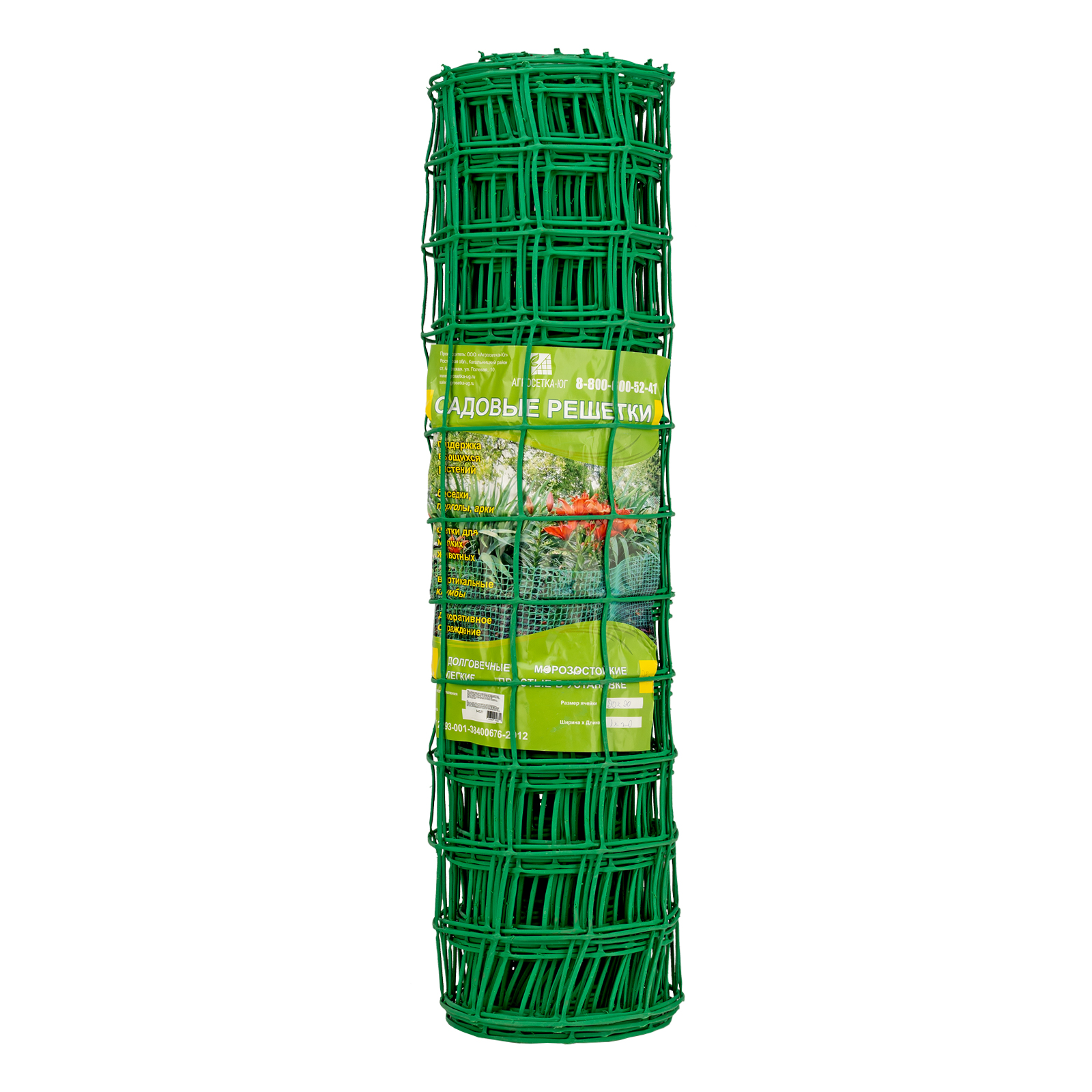 Зеленая пластиковая заборная решетка 64521, 1 х 20 м, в рулоне, с ромбовидными ячейками 83 х 83 мм, используется для создания изгороди. С ее помощью можно полностью оградить садовую и жилую территорию или зонировать отдельные участки. Возможно применение изделия в качестве каркаса для живой изгороди или элемента декора вместе с деревянными и каменными материалами. Также решетка пригодится для установки ограды на детских и спортивных площадках, создания вольеров для птиц и животных.