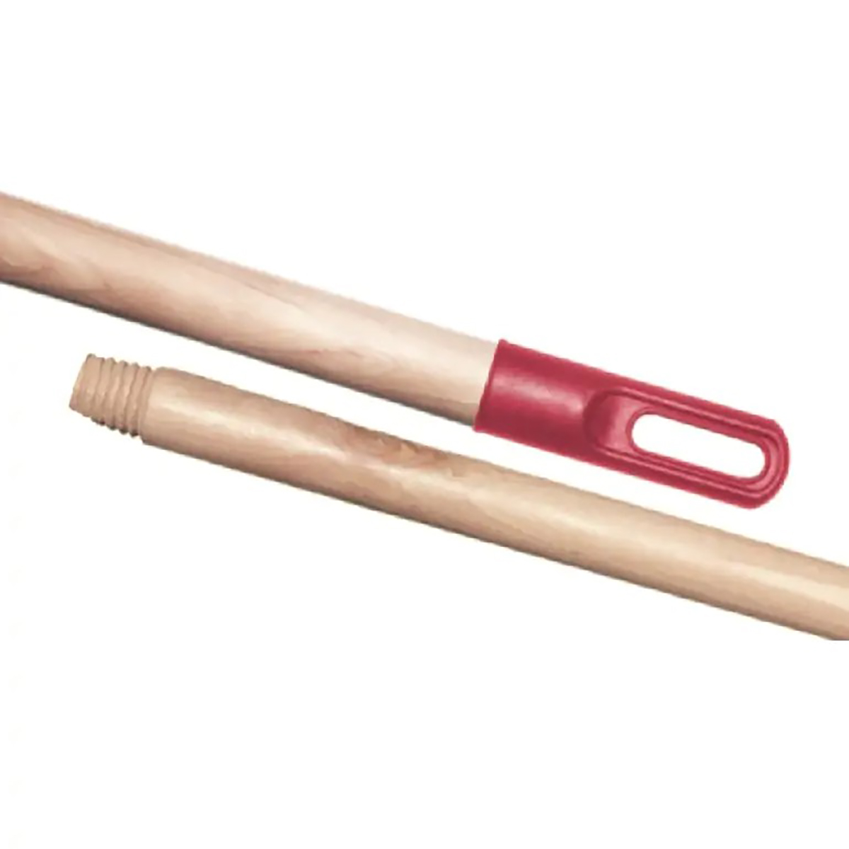 Рукоятка изготовлена из древесины березы. Прочная, удобная, имеет гладкую поверхность. Оснащена наконечником с отверстием для подвешивания и еврорезьбой, благодаря которой рукоятка подходит к любым щеткам, швабрам и насадкам.