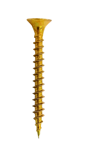 Универсальный саморез с потайной головой, острым наконечником, крестообразным шлицом POZI. Покрытие-желтый цинк.