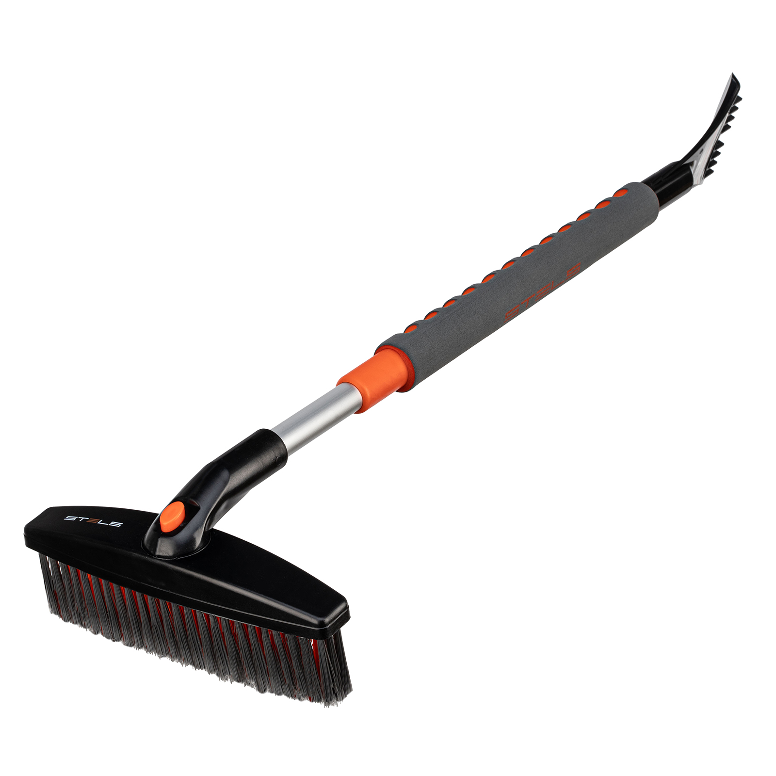 Телескопическая щетка-сметка для снега со скребком Stels 55313, длину которой можно увеличить с 730 до 1000 мм, помогает быстро очистить автомобиль от снега и наледи. Раздвижная рукоятка облегчает чистку капота и крыши. Щетка будет полезна автолюбителям.