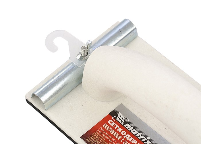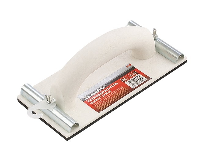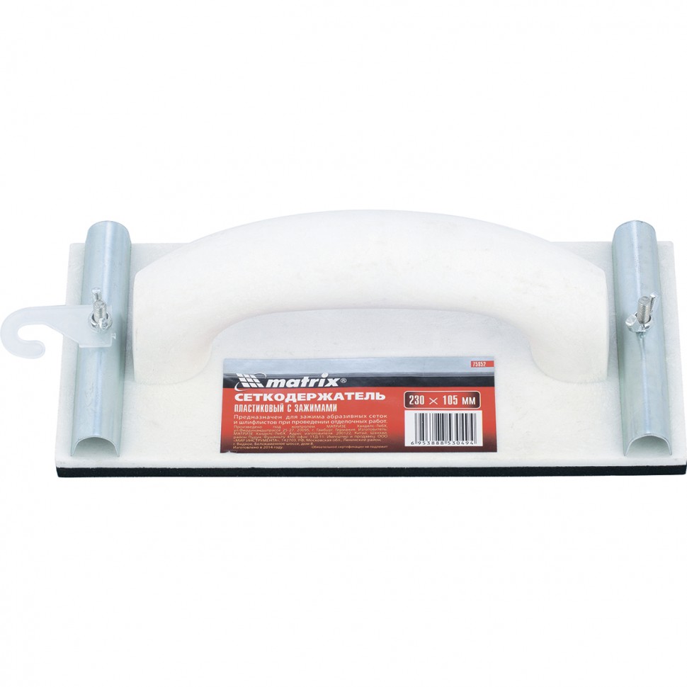 Сеткодержатель Matrix 75852, 230 х 105 мм, пластиковый с зажимами, используется для ручного шлифования деревянных, шпатлеванных, металлических, пластмассовых и прочих твердых поверхностей. Сеткодержатель фиксирует абразивную стеклосетку или шлифлист и позволяет удалять старые отделочные покрытия, подготавливать поверхность под покраску, а также выполнять чистовую обработку.