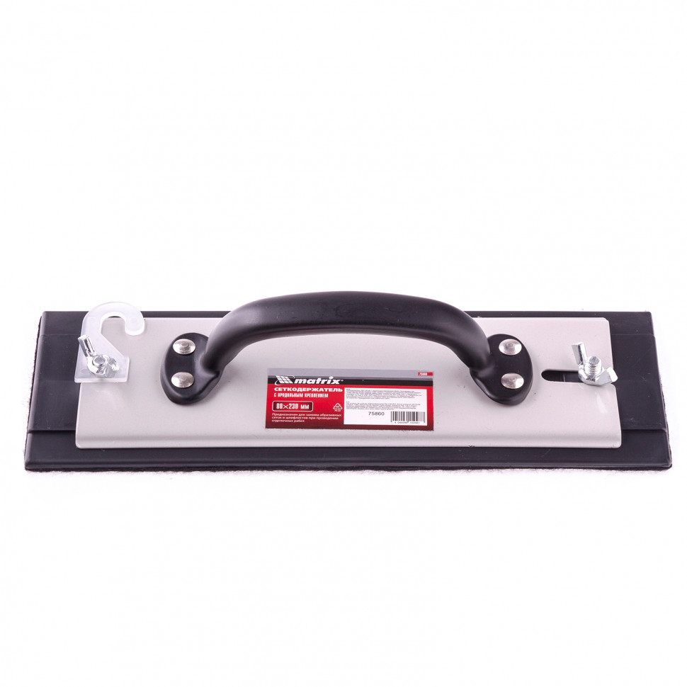 Сеткодержатель Matrix 75860, 230 х 80 мм, с продольным креплением используется для подготовки твердых поверхностей к малярно-отделочным и кузовным работам. Он надежно фиксирует сетки или шлифлисты любой зернистости, позволяя проводить как грубую, так и тонкую шлифовку древесины, металла, шпатлевки или пластика.